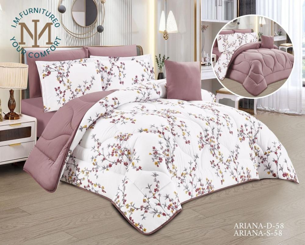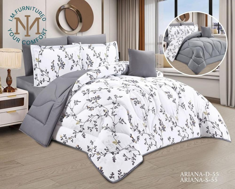 ✨ جدّد غرفة نومك بإطلالة عصرية مع مفرش أريانا المشجر من أي إم للمفروشات! 🏡💖