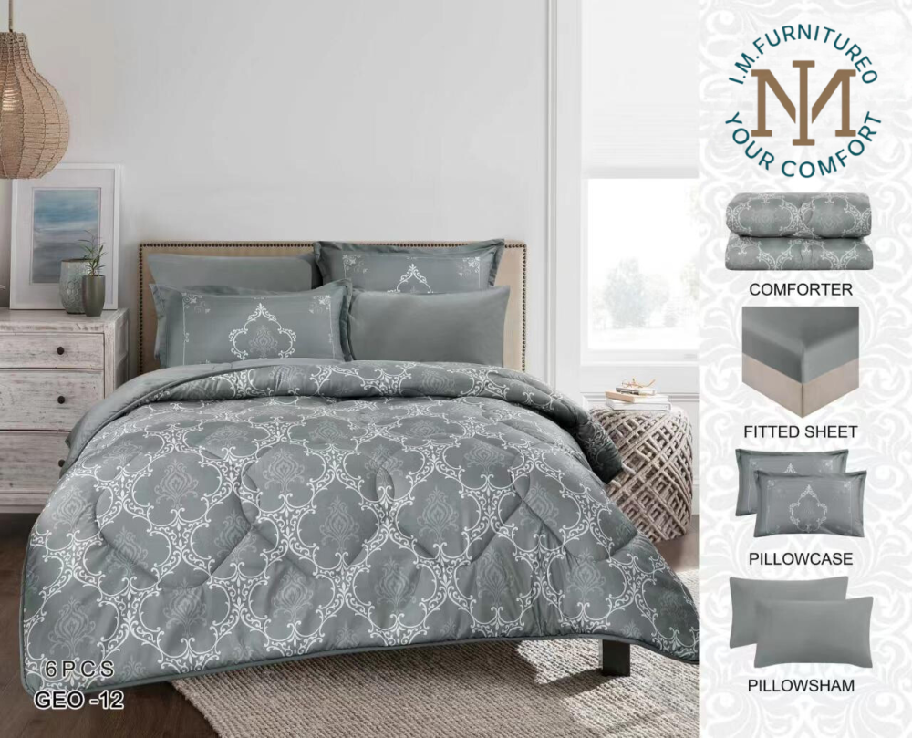 جدد غرفتك بأناقة واسترخِ براحة مع مفرش جيو من أي إم للمفروشات. احصل على مجموعتك الآن واستمتع بلمسة من الفخامة والراحة المطلقة! ✨