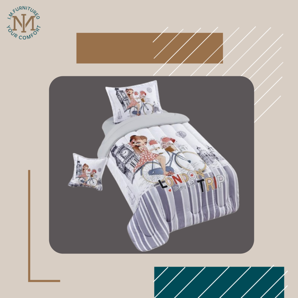 • اللحاف بمقاس 170*230، مصنوع من أجود أنواع القماش ليضمن لك الراحة والاستدامة.
