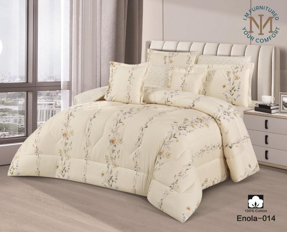 اضف لمسة من الأناقة والرقي إلى غرفة نومك مع مفرش إينولا المزدوج من أي إم للمفروشات. اطلب مجموعتك الآن واستمتع بالراحة والفخامة! صنع في الصين. 🌟