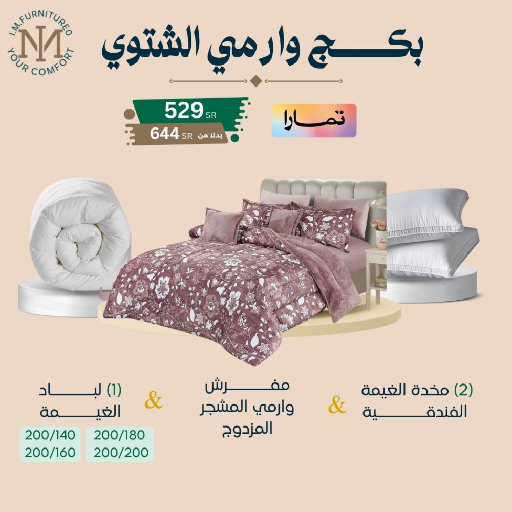مع بكج وارمي الشتوي المشجر المقدم من مجموعة أي إم للمفروشات، استمتع بدفء لا مثيل له وتصميم أنيق يضفي جمالاً وراحة على غرفتك طوال فصل الشتاء ❄️.