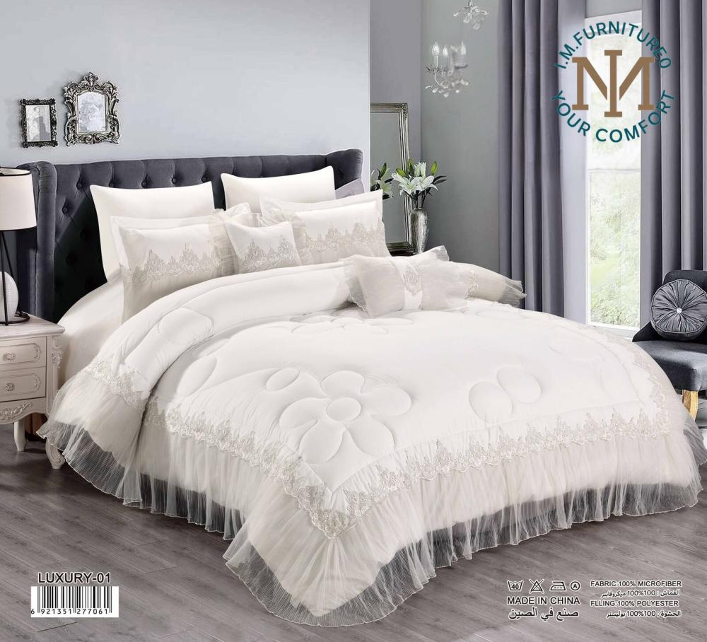 في متجر أي إم للمفروشات تلقين مفارش عرايس فخمة تجمع بين النعومة، الفخامة، والتفاصيل الملكية اللي تخلّي كل زاوية من غرفتك تحكي عن ذوقك الرفيع.