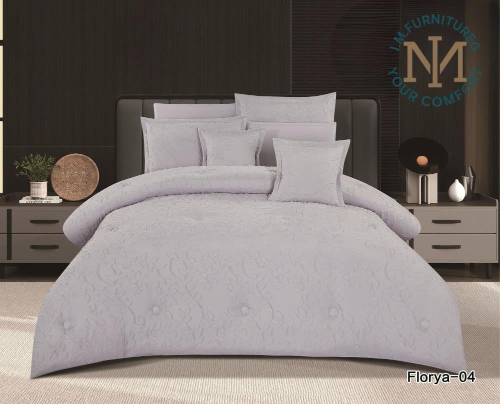 مفرش فلوريا هو الخيار المثالي لمحبي التصاميم الهادئة والفخمة. بتصميم تشجيرة خفيفة وألوان جذابة، سيضفي لمسة من الأناقة على غرفتك في الصيف. مصنوع من مايكروفايبر صيفي عالي الجودة ليمنحك راحة وانتعاش طوال اليوم.