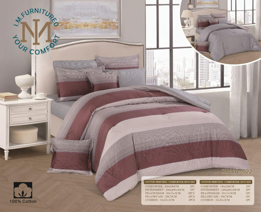 مفرش كايا المشجر مصنوع من قماش قطني عالي الجودة 100%، وهو طبيعي وصالي. يمنحك تجربة نوم هادئة ومريحة بشكل دائم. يتميز بتصميمه المشجر الجميل والمريح، مما يجعله خيارًا مثاليًا لغرف النوم¹.