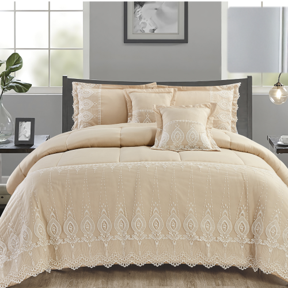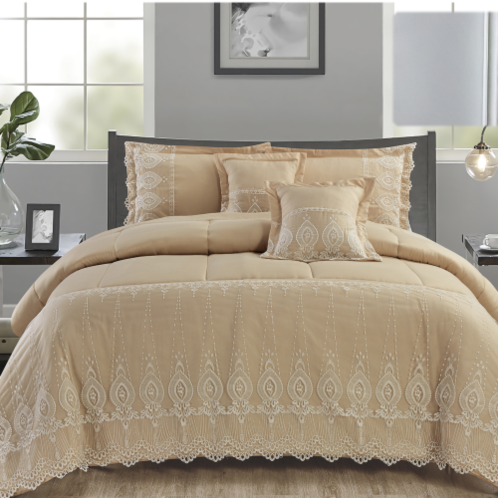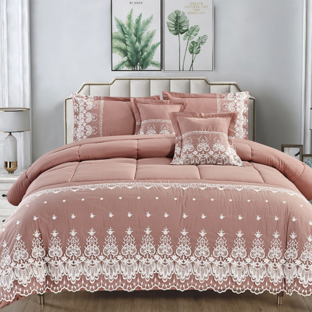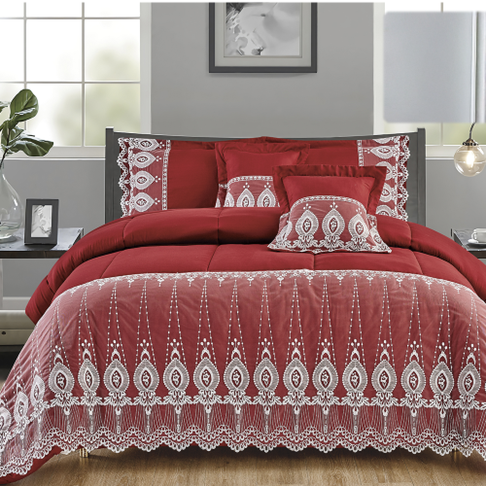 ارتقِ بتجربة نومك مع مفرش الدانتيل الفاخر الذي يجمع بين روعة التصميم وجودة الخامات، ليمنحك إحساسًا بالفخامة كل ليلة. يأتي هذا المفرش بتصميم أنيق مزين بتفاصيل الدانتيل المبهجة، ويتوفر بمجموعة من الألوان الجذابة التي تضيف لمسة من الحيوية إلى غرفة نومك.
